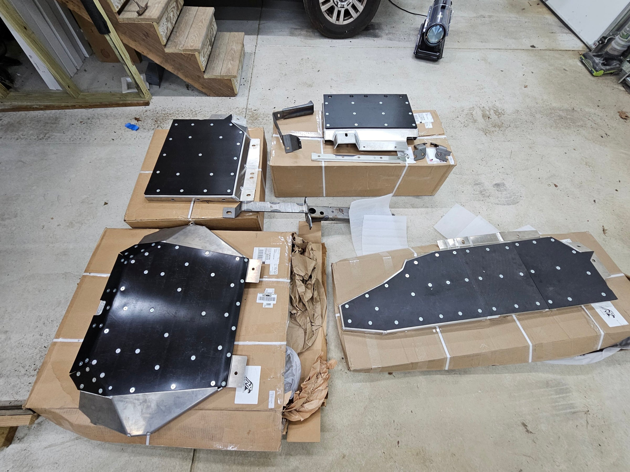 This skid system is intentionally designed with as few gaps and openings to catch your skid plates on rocks/obstacles. Each skid fits very tightly up against the next. The skid plate system consists of the following separate components: