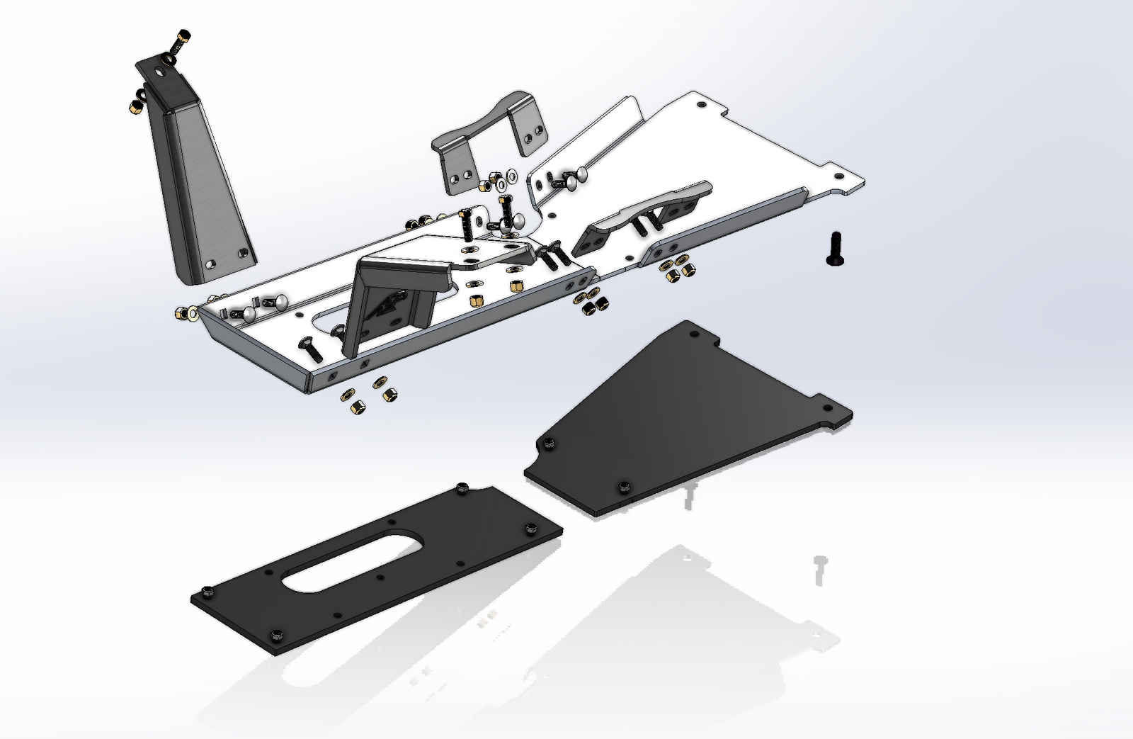 We build these skids out of 1/4" thick 5052 Aluminum for its superior formability and strength -- compared to many other alloys. The design and shape of the skids largely determine how rigid they will stay over time. We've designed these belly skids to tuck bolt heads up and out of the way, where possible (as can be seen on the rear crossmember and fuel tank skids).